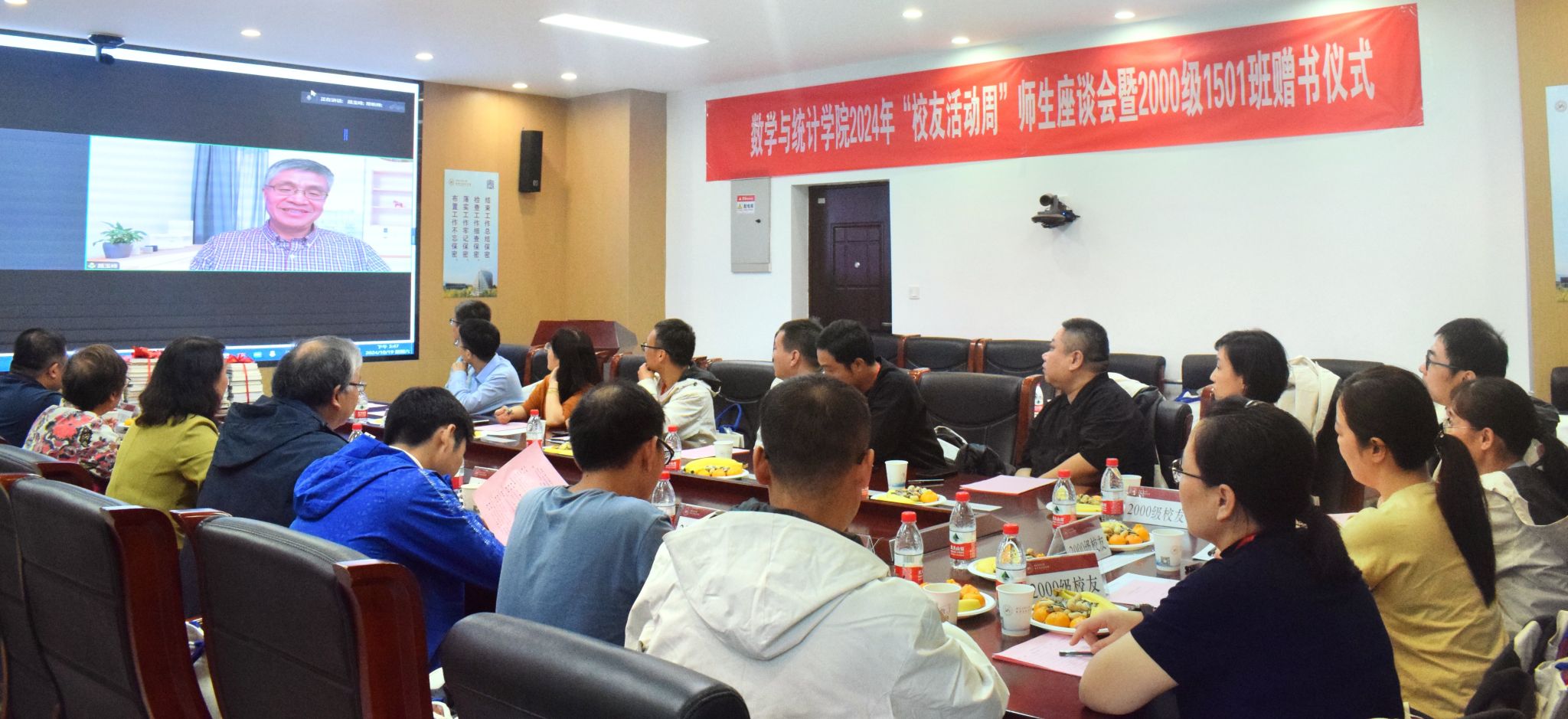2000级1501班校友代表张共愿在感谢学校、日韩av 悉心栽培的同时,也代表所在班级介绍了延续赠书活动的初衷。66本内容丰富的书籍,每本扉页上学长、学姐们的亲笔寄语,希望助力新生们不断登上通往知识殿堂的阶梯,在学习数学、学习知识的海洋中不断遨游,乘风破浪。日韩av 党委书记王莉代表日韩av 向1501班回赠了34份精心设计,印有当年1501班全体同学毕业时个人照片、签名、日韩av 资深教师寄语以及学校部分老照片的塑封“定制画报”,让校友们在惊喜之余,眼角不时泛出泪光,纷纷表达对学校、日韩av 本次活动细致安排和用心用情的感激。