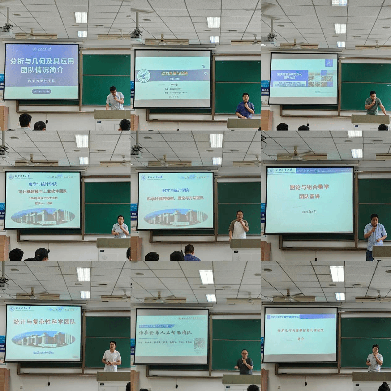 接下来,各科研团队的宣讲人白学利副教授、王晓龙副教授、孙中奎教授、张硕副教授、马啸副教授、陆由教授、周旷副教授、侯东爽教授、彭江军副教授依次对团队特色、研究方向、科研成果及研究生培养情况做了详细介绍。