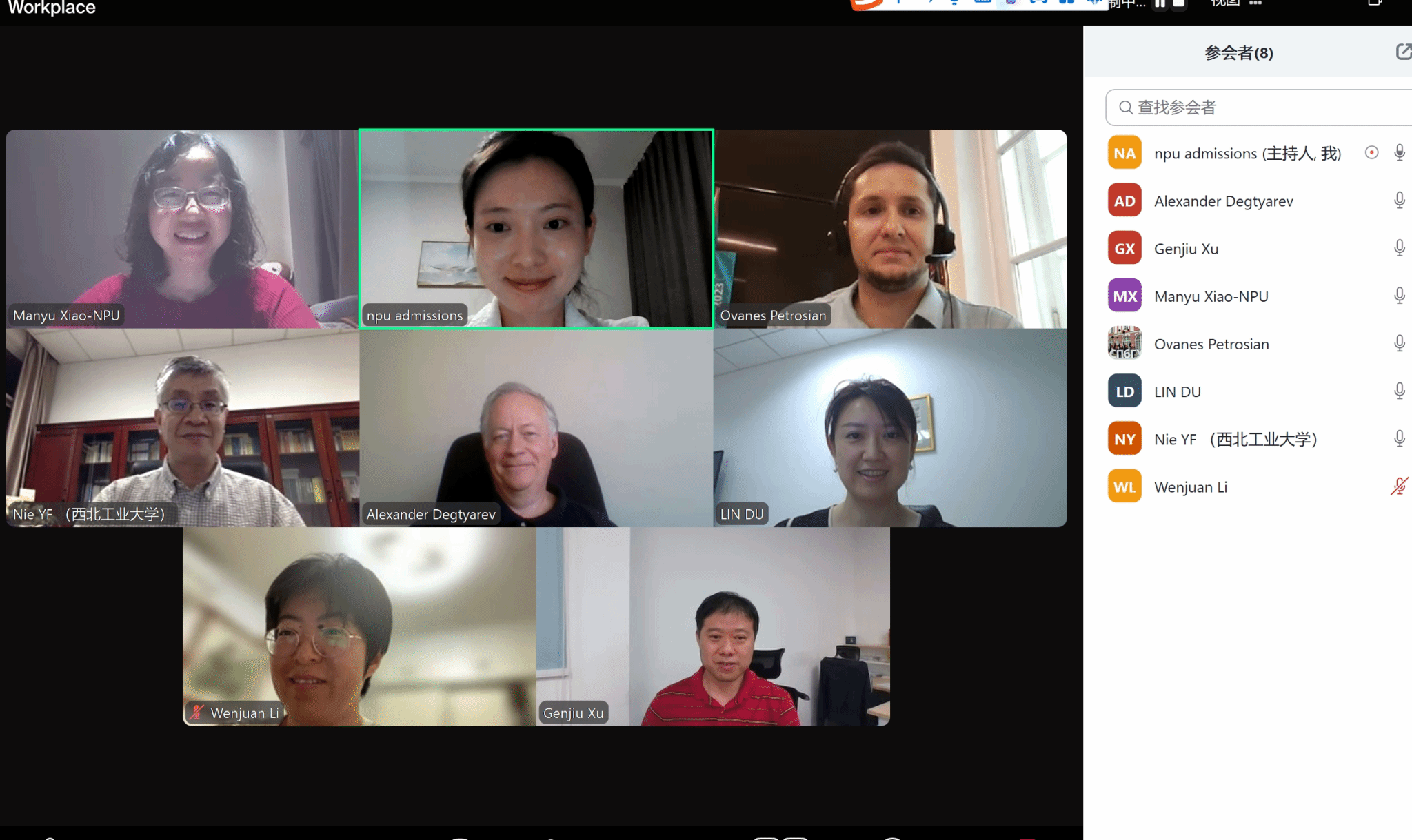 俄方出席人员包括圣彼得堡国立大学外事处主任Tatyana Ryazantseva女士、人工智能中心主任及应用数学与过程控制系数学博弈论和统计决策教研室副教授Ovanes Petrosyan、计算机建模与多处理器系统研究室教授Aleksandr Degtyarev与编程技术研究室副教授Ivan Blekanov。数统日韩av 出席人员包括院长聂玉峰、国际化副院长都琳、研究生副院长徐根玖、国际交流与合作办公室主任肖曼玉、调和分析与几何分析团队教授李文娟、国际化秘书李卓榕。会议由李卓榕主持。