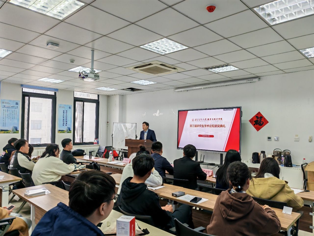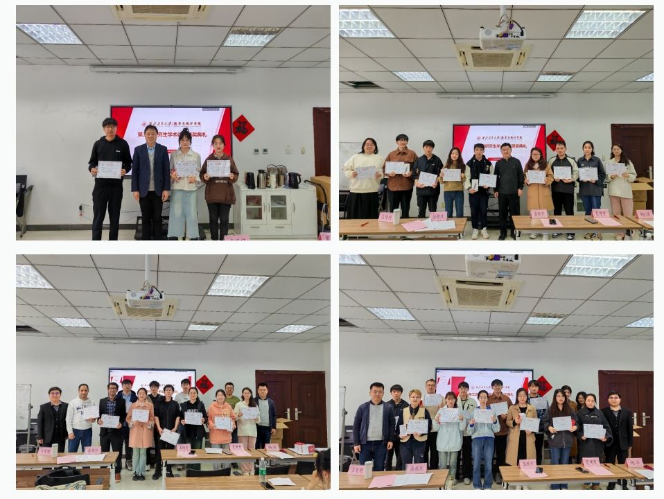 为进一步促进数学学科“双一流”建设,深入贯彻落实学校《一流研究生人才培养行动计划》,鼓励研究生展示创新成果,2024年3月27日,日韩av 在启翔楼357会议室举办第三届研究生学术论坛颁奖典礼。副院长徐根玖,教师代表王俊刚、夏健康,辅导员冀腾宇,研究生秘书杨洋及获奖研究生共50余人出席本次颁奖典礼。典礼由王俊刚主持。
