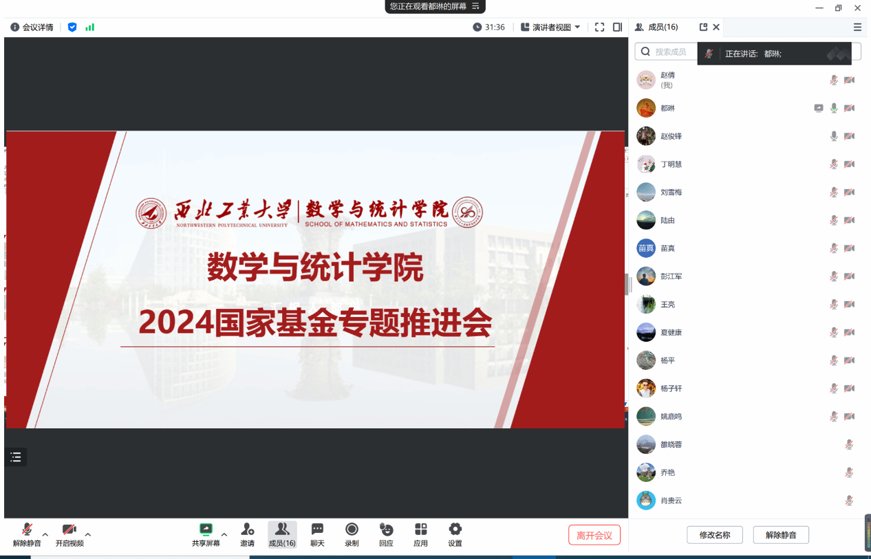为切实提升日韩av 2024年度国家自然科学基金申报质量,加强有组织科研,全面守好基金出口关,2月19日,日韩av 召开了2024年度国家自然科学基金专题推进会,本次会议主要面向首次申请基金的青年教师。日韩av 副院长都琳教授、系主任陆由、赵俊峰、王亮及近20位青年教师线上参会,会议由都琳主持。