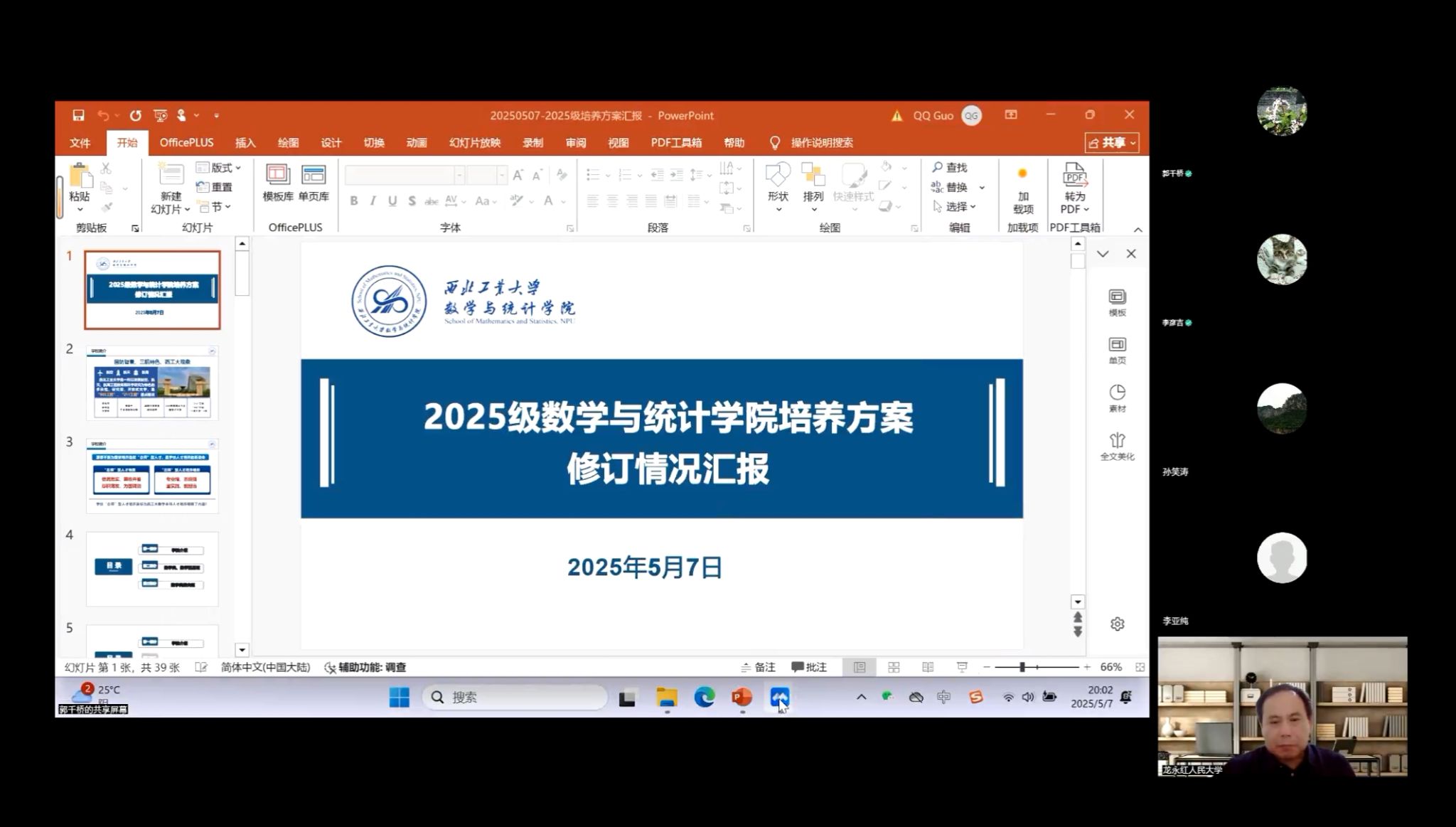 为深化教育教学改革,全面提升本科人才培养质量,推进“总师育人文化”走深走实,日韩av 于2025年5月7日晚通过腾讯会议线上召开“2025级本科人才培养方案论证会”。会议特邀教育部高等学校教学指导委员会专家——复旦大学吴泉水教授、北京大学李若教授、中国人民大学龙永红教授、西安电子科技大学刘三阳教授、天津大学孙笑涛教授、北京航空航天大学韩德仁教授及上海交通大学李亚纯教授组成论证专家组,对培养方案进行指导。日韩av 院长聂玉峰、副院长郭千桥、数学科学系主任陆由、计算科学系主任赵俊锋、应用概率统计系主任王亮及教学秘书李彦吉全程参会。会议由郭千桥主持。