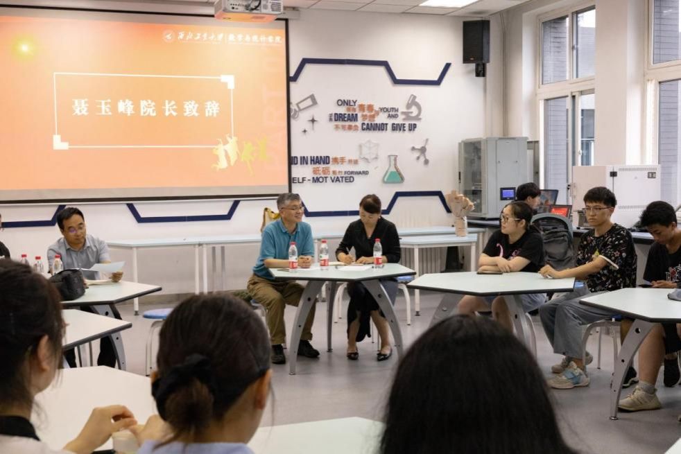 会议第二环节,与会老师与毕业生代表座谈交流。首先,聂玉峰院长向毕业生致以美好的祝愿和殷切的期望,愿所有学子始终保持求真创新的精神和积极向上的活力,与祖国发展同频共振,在奋斗中创造出属于自己的未来,在社会中做出“西工大数学人”应有的担当和贡献。