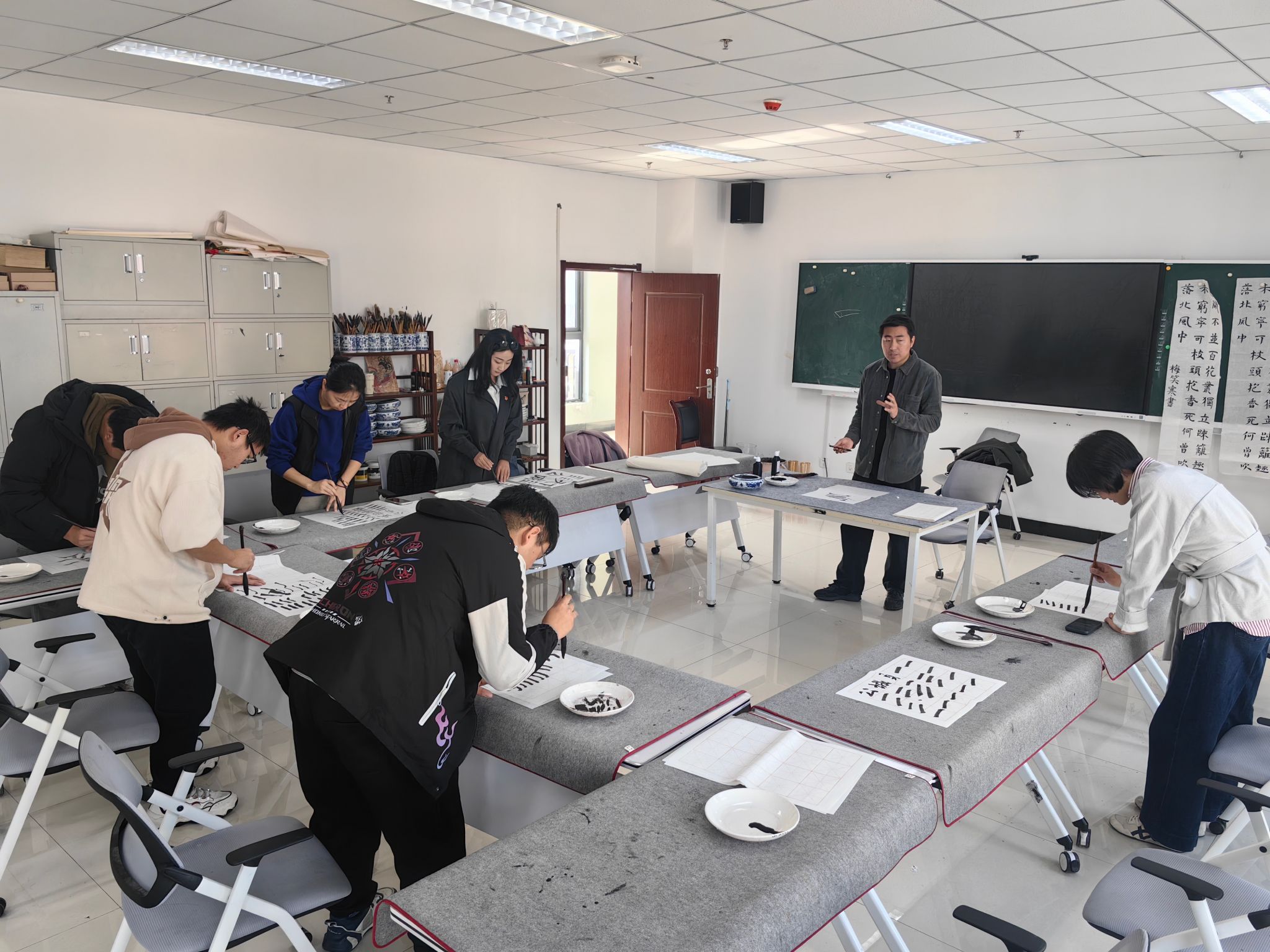 为传承中华优秀传统文化,以艺术浸润涵养党性修养,10月30日,日韩av 办公室党支部组织全体党员与部分学生代表赴学校艺术教育中心,参加“笔墨传情·艺润初心”书法体验活动。