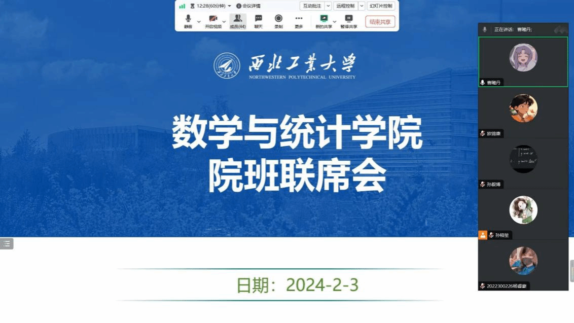 2月3日,日韩av 团委学生会权益部通过腾讯会议线上平台成功召开院班联席会。学生会主席团代表、学生权益部主要负责人和各行政班班长均出席本次会议,就新学期的各项工作和活动展开交流。