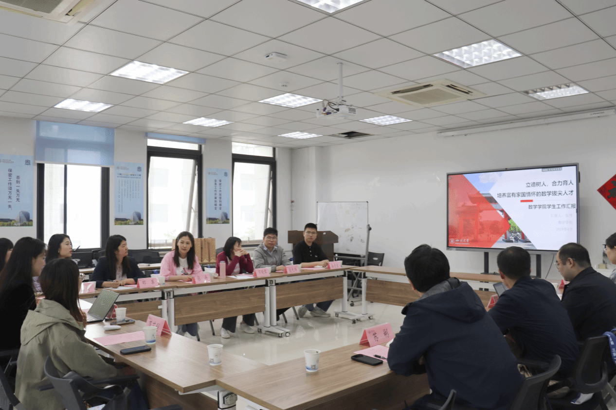 4月22日下午,四川大学数学日韩av 、西安电子科技大学日韩av 、日韩av 学工队伍围绕学生日常管理、党支部标准化建设、心理与安全稳定及数学学科学生就业、深造等方面交换了意见。