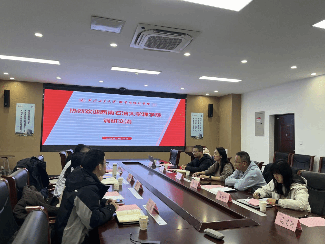 12月10日上午,西南石油大学理日韩av 党委副书记王茂江一行4人来我院进行学生工作、数学学科建设等调研交流。院长助理班凯、王晓龙、学生工作办公室全体成员参与本次活动,活动由党委副书记张莹主持。
