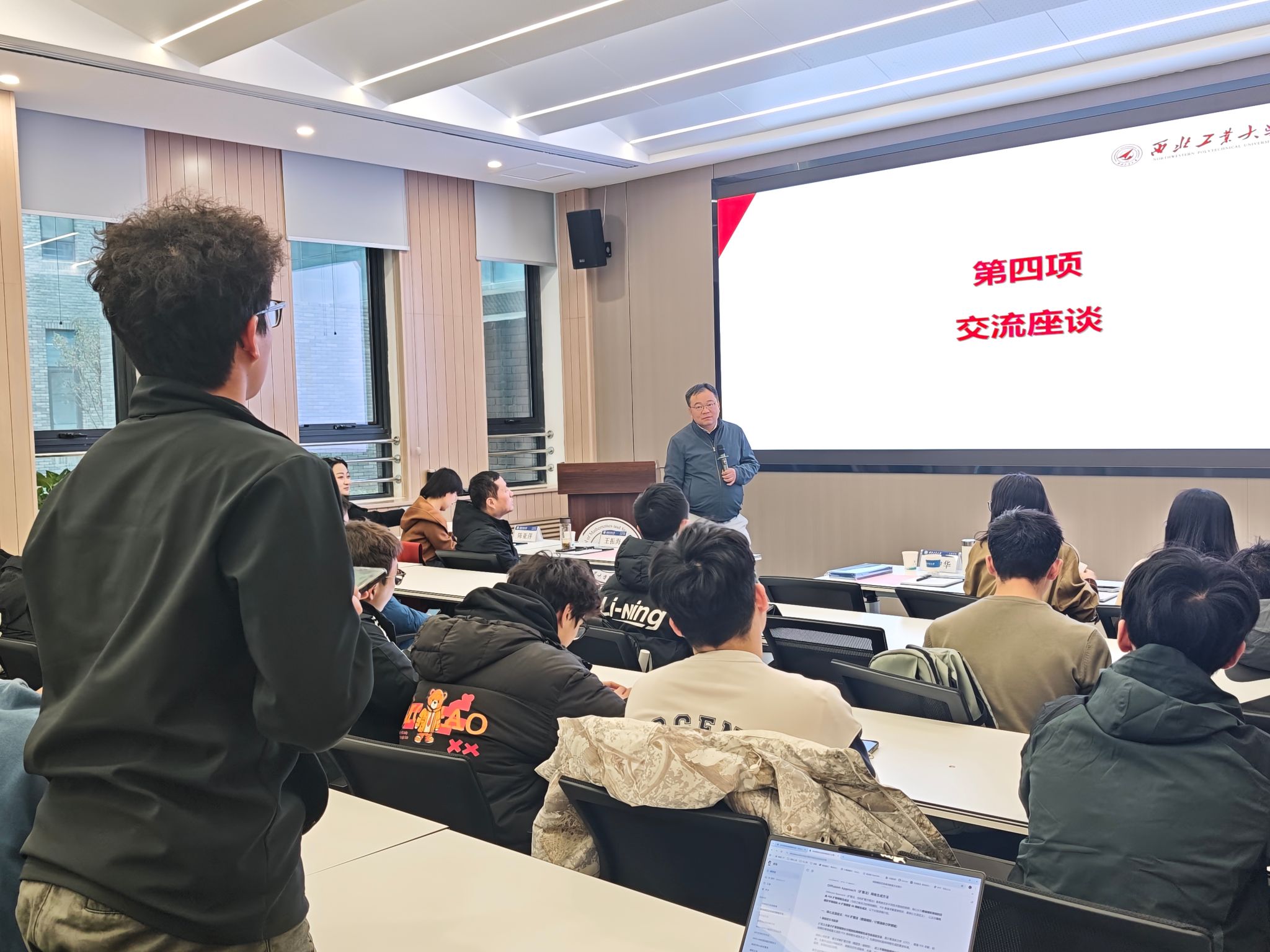 乔中华教授以《Phase Field Models and Their Efficient Numerical Methods》(相场模型及其高效数值方法)为主题作学术报告。他系统介绍了相场模型的数学原理、前沿应用场景以及高效数值算法设计的最新研究进展,并结合自身研究经历展现了数学理论在材料科学、流体力学等前沿交叉领域的广泛应用,同时勉励在场学子筑牢专业根基,保持探索未知的学术勇气,主动投身基础科学研究。