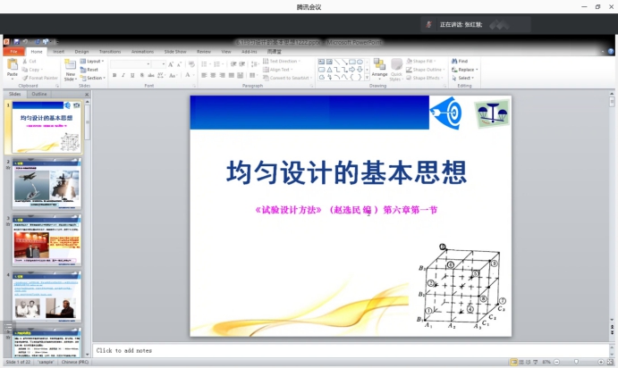 本次课程思政案例分享主要包括统计专业课及公共课两个方面,7位老师根据丰富的教学经验,并认真梳理,向大家展示了相关课程思政案例。张红慧老师从均匀设计的基本思想引入王元教授和方开泰教授几十年如一日开展科学研究,引导学生学习他们不忘初心、淡泊名利,全心全意为祖国服务的高贵品质。肖华勇老师根据自己长期的数学建模教学和实践,深入挖掘谣言止于智者、疫情防控背后的数学原理,并指出做好个人防护、遵守防疫政策就是对社会的最大贡献。王亮老师在统计实验算法设计中引入割圆术思想,弘扬我们古代伟大数学家刘徽、祖冲之潜心治学、精益求精的高尚美德。张硕老师从常微分专业课和概率统计公共课认真挖掘,引导学生努力践行唯实、团结协作、勇攀高峰的科学精神。谢文贤老师深入分析了随机点名的概率解释和统计分析,通过课堂互动,着力引导学生理论联系实际,锻炼科学思维。雷佑铭老师从贝特朗悖论入手,教育学生学习科学思维方法,培养学生探索未知、追求真理的科学精神。裴斌老师通过介绍我国多元统计分析学科的开拓者许宝騄先生,引导学生厚植家国情怀、树立正确的三观。与会老师集中观看学习了全国课程思政竞赛特等奖示范课程,进一步加深了对课程思政的认识和理解。