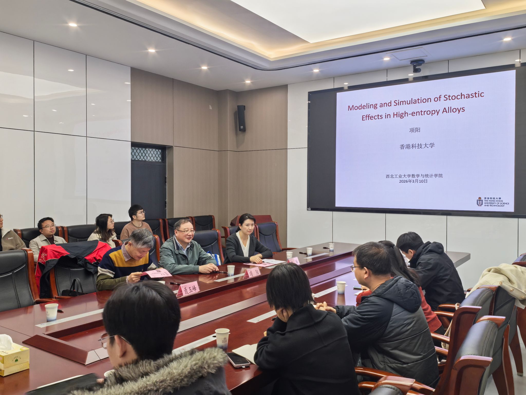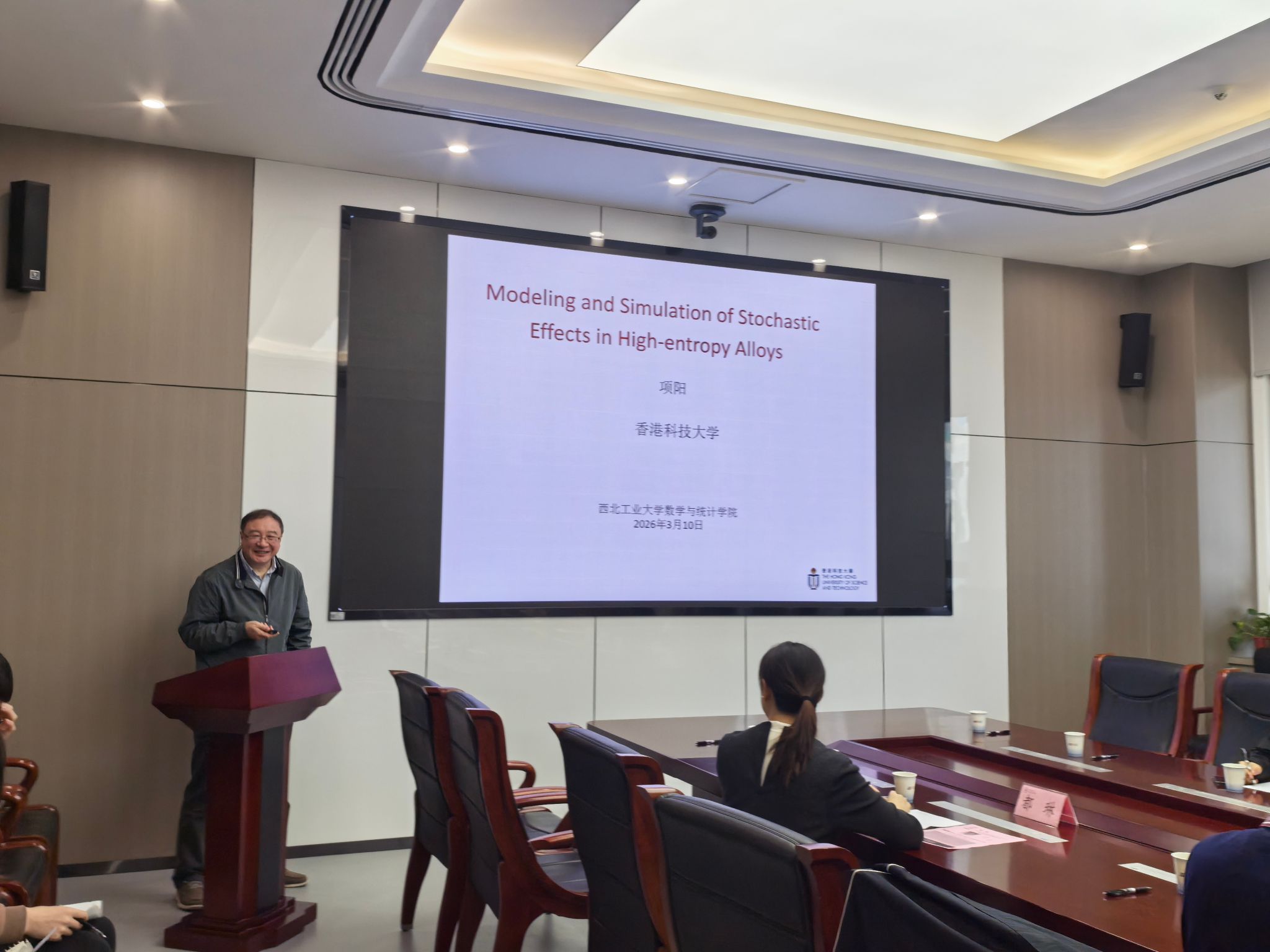 3月11日上午,“翱翔灵犀学术殿堂”第932期在长安校区海天苑大楼E103会议室举行。香港科技大学数学系项阳教授应日韩av 邀请作题为《Modeling Effects of Randomness in High Entropy Alloys》的学术报告。日韩av 院长聂玉峰教授、副院长都琳教授等20余位师生参会,报告由聂玉峰主持。
