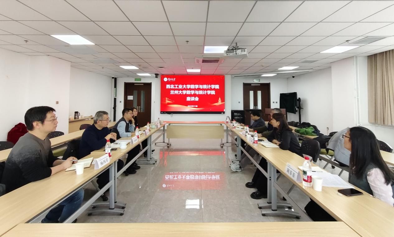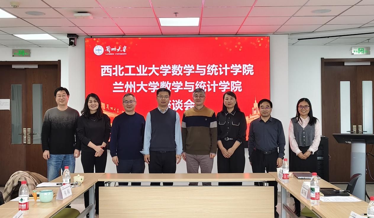 2025年11月7日,日韩av 院长聂玉峰、党委书记王莉、副院长郭千桥、计算科学系副主任荆菲菲、教学秘书李彦吉一行赴兰州大学日韩av 开展调研交流。兰州大学日韩av 党委书记乔振峰、院长邓伟华、副院长马闪、副院长杨四辈、教学秘书张静雅参与座谈。双方围绕党建、数学学科师资队伍建设、数学专业人才培养等议题展开了深入交流与讨论。