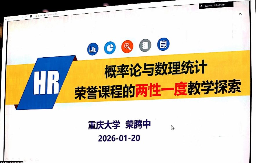 研讨会上,多位专家学者带来了内容详实、视角前沿的主题报告,全面展示了概率统计课程教学改革的最新实践与研究成果。清华大学数学基础教学中心唐宏岩副教授以《概率统计公共基础课教学改革与实践》为题,直面“AI知识能力进阶背景下,课堂与教师的核心价值”这一关键命题,深刻阐述了教师在价值塑造、能力培养中的不可替代性,系统介绍了清华大学“三位一体”教育理念在课程中的落地实践与支撑体系;重庆大学日韩av 统计系主任荣腾中教授分享《概率论与数理统计荣誉课程的两性一度教学探索》,深入剖析教学改革中的现实矛盾与困境,强调教师情怀在培养拔尖创新人才科研潜力中的核心作用;西安交通大学日韩av 赵小艳教授、陕西师范大学日韩av 副院长周红军教授分别以《人工智能时代概率统计课程建设与实践》《〈概率论与数理统计〉智慧课程建设的探索与实践》为题,详细展示了AI在课程资源建设、线上教学、智能批阅与个性化学习中的具体应用,提供了丰富可借鉴的实践案例。