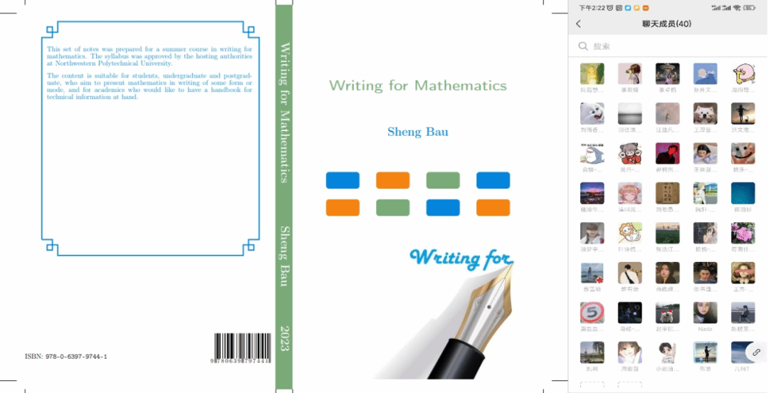 24学时的英文课程涵盖了两部分内容。第一部分是科技英文写作,宝升教授从用词、语法、短语、句子讲到段落,层层递进,针对易错问题进行专门讲解和讨论。在讲到段落时,宝升教授特别剖析了著名数学家希尔伯特在1900年的数学家大会上演讲的英文译文,使同学们从字里行间体会到数学大师的谦逊和远见。第二部分是Tex/LaTex编辑工具的使用。内容涵盖了常用知识点,包括文档类型的选择、数学公式与符号的使用、图形及表格的生成和插入、定理环境和章节目录的设置等。
