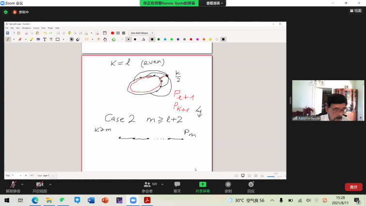 2021年8月9日至8月18日,日韩av 暑期国际讲堂《极值组合论》通过Zoom圆满完成授课。该课程由日韩av 顾问教授Gyula O.H. Katona(匈牙利科日韩av 院士、欧洲科日韩av 院士和保加利亚科日韩av 外籍院士)讲授。来自数学、材料科学与工程及本硕实验班等专业的本科生、研究生及旁听生参加了该课程,听课人数超过了200人。